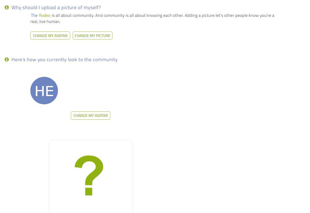 Let's customize your profile. Click the green 'CHANGE MY AVATAR' button to get started.